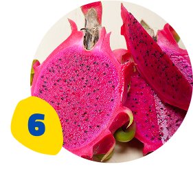 La pulpa de color es perfecta para quienes buscan un sabor mas intenso, dulce y afrutado, con notas similares a frutos rojos arándanos o frambuesas) de textura mas jugosa a veces ligeramente cremosa, alta en antioxidantes, especialmente betalaínas, por su piel mas delgada es mas delicada que la variedad blanca, muy llamativa visualmente, se asocia con mercados gourmet y premium por su color y sabor diferenciador.